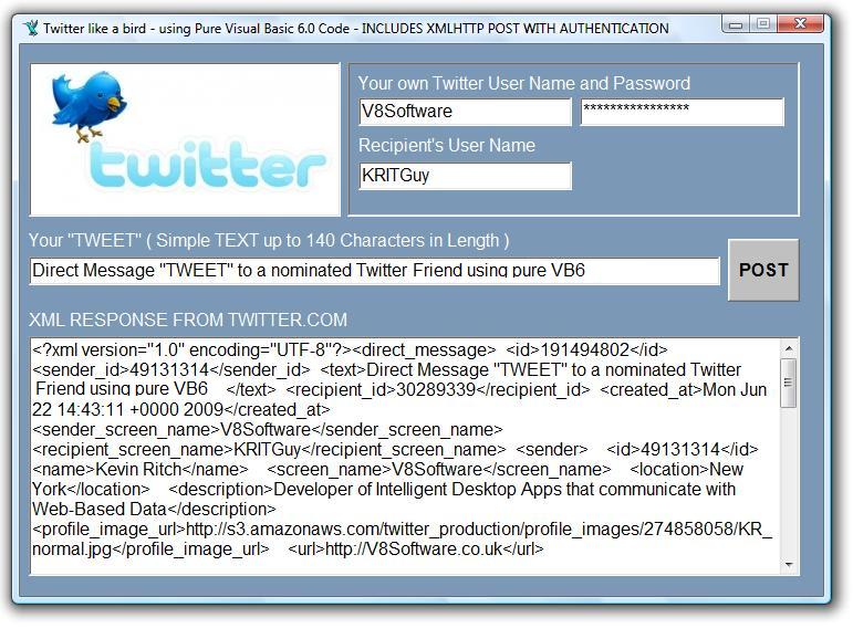 Download TWITTER FUN Tweet like a Bird with full Authentication in pure VB Code (37 KB)