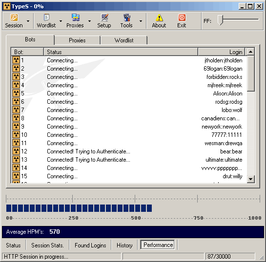 Test the strength of your website's authentication by using brute force dictionary method's! Not 100% complete but fully functional. FEATURES: Full proxy support - Load and validate proxy lists - Word manipulation - Use up to 99 socket's or 'Bots' at a time - and more...