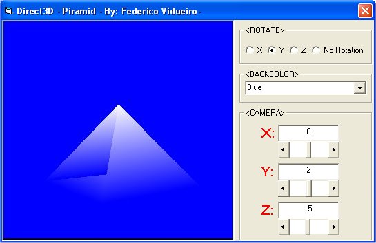 It shows how to do 3D graphics with direct3d. It's render a piramid.