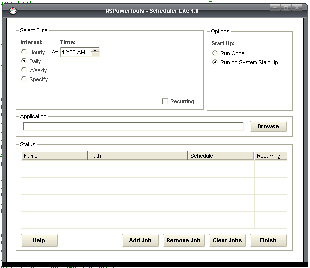 A replacement scheduler tool for windows.. I recently noticed the scheduler is effectively broken in XP (SP2). You now require a logon to schedule a task, and applications scheduled as System with netapi or wmi, are no longer starting. So, I made my own scheduler! This runs with almost no overhead, can schedule multiple simultaneous tasks by hour/day/week/month. Can schedule recurring jobs, and is completely accessable from a command line. This should also run on all operating systems, (let me know..). Well, hope ya like it.. Comments/suggestions are welcome..