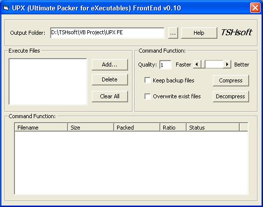 UPX FrontEnd bug fixed! Now can 100% working correctly! Can compress and decompress executable files. Enjoy it!