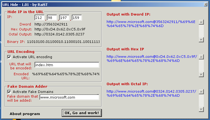 encoded urls and hidden ip's works with only Internet Explorer 5.5 and below. They do not work with IE6