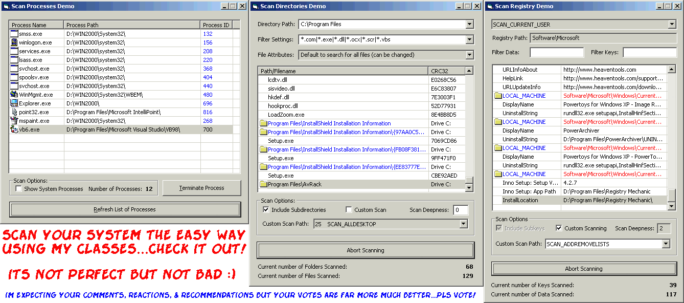 3 classes in vb6 for scanning the registry, files/folders,