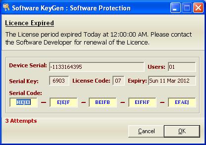 This is software “lock†module placed on Visual Basic 6.0 program by the developer to prevent the program from being copied or distributed without approval or authorization. The required Serial Code is different for every computer that the program runs in. The Serial Code has five sets of codes with each set having 5 characters i.e. ABCDE-FGHIJ-KLMNO-PQRST-UVWXY.