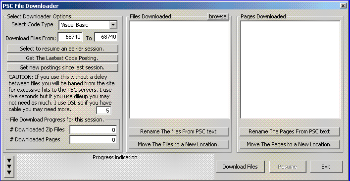 it should work with all VBC listings. It saves its' download progress in the registry.