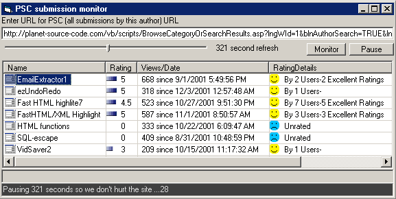 I ended up using the DHTML edit control to get the HTML. Using the inet control didn't work since PSC monitors for this. I tried using the Webbrowser control, but obtaining the source code from DOM is difficult since the documentcomplete event fires everytime a frame or embed finishes loading. Anyway, I know it seems weird but this method seemed to work by far the best.