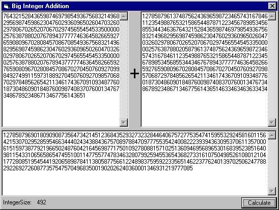 This code calculates an huge Integer (I don't know how big, because system crashed at copy & paste). It works with strings so the Number can be bigger than double and so on...