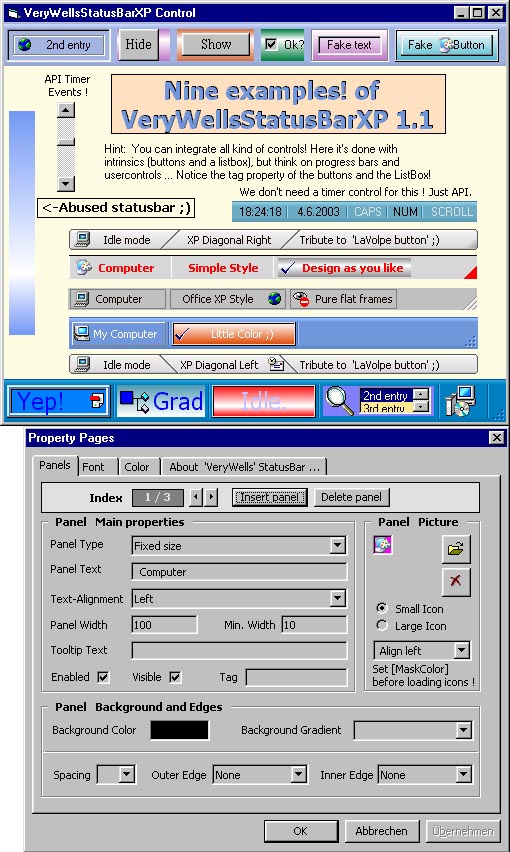 => VeryWellsStatusBarXP - Sorry folks for my upload mistake! For new release 1.2 (6/10/2003) with fine new feature plz goto ___ https://www.vbcoders.com/vb/scripts/ShowCode.asp?txtCodeId=45877&lngWId=1 ____ All votes are welcome - thx !