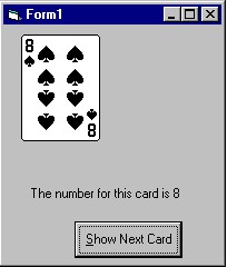 Simple code shows how to display any playing card image using the VBCRADS.OCX.