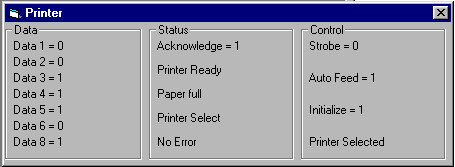 View Data that go to the printer and the control strobe, select enz and view the status from the printer to the computer.