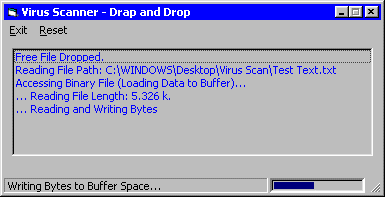 Drag and Drop a Free File onto the List Box. The Application opens the File as Binary and loads it into Buffer Space and scans the contents for Virus Strings. Very easy to do, and commented. It only does a single file right now, looking to add Directories upcoming.