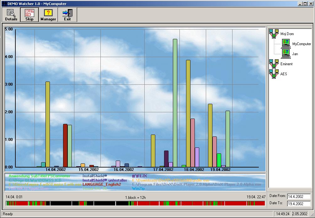 Then all we have to do is find this process EXE and get app name from there. There are few different ways to get application name from exe file. This application also monitors keyboard and mouse activity just to see when user was working and when not.