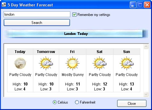 "Weather" is an application which will query a weather server and display a 5 day forecast for the entered area. Cheap and cheerful!! :-)
