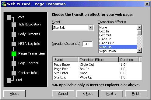 The amazing, cool web page creating proggie Web Wizard is back with it's new, improved and easy-to-use interface.Now you can explore the six steps for creating your web page easily and select various options by clicking them. It's now featuring the following steps :