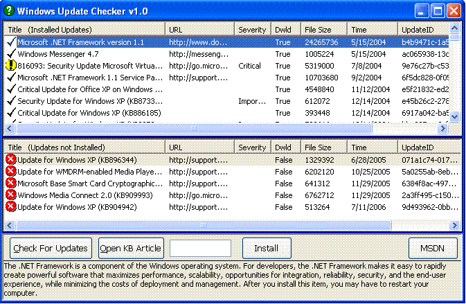 This is a Windows Update Checker. It will tell you all installed Windows Updates on