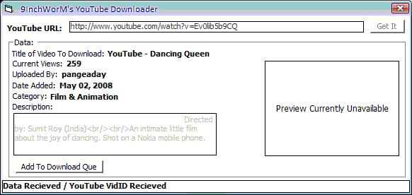 Gets information about a specific video, parses it and gets the vID of the video for which you can download the youtube video to your harddrive.